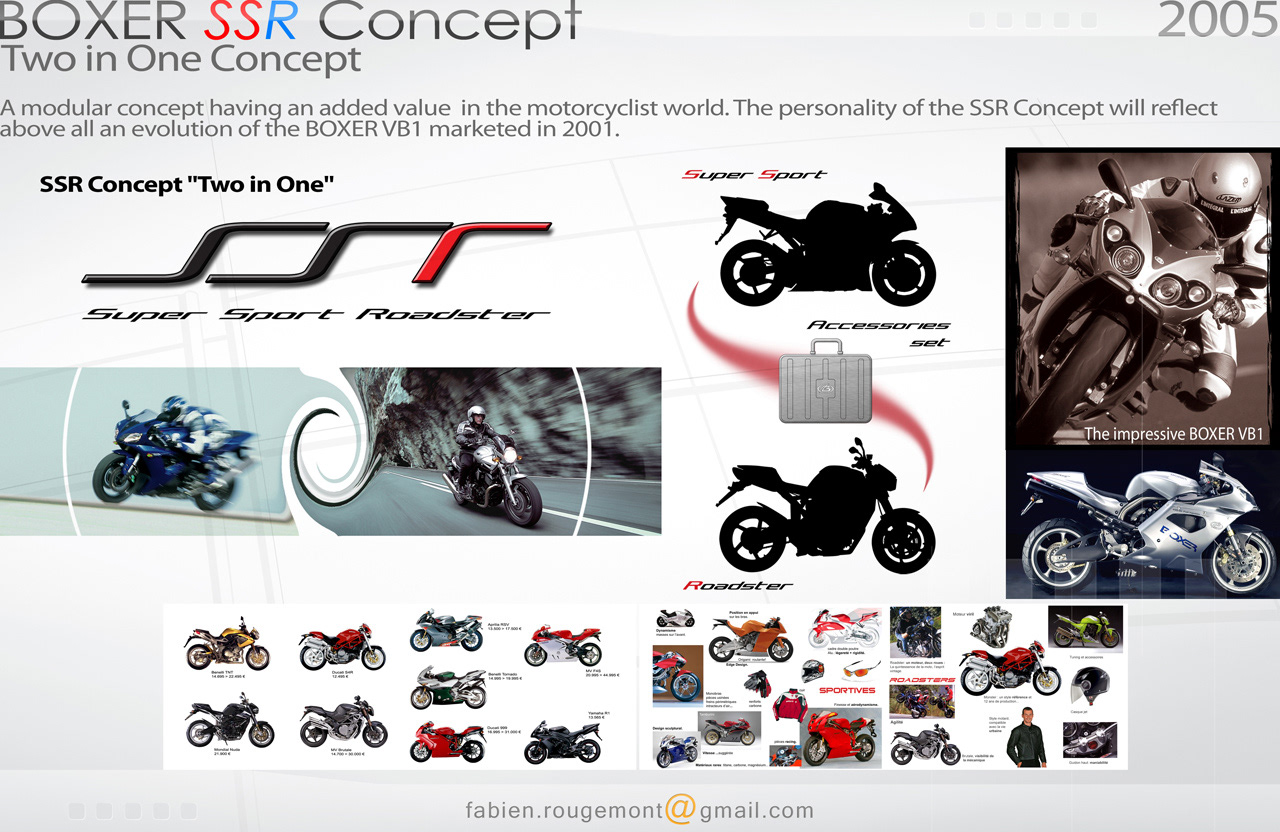 In order to give to the user the possibility to offer him TWO feelings for the price of ONE. "SSR" is a "TWO in ONE" motorcycle. One SuperSport, one Roadster.